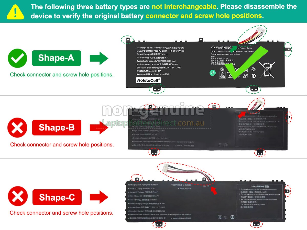 First, you need to find model name of your laptop or part number of the old battery(e.g. "4964121-2S1P"), and then check whether they