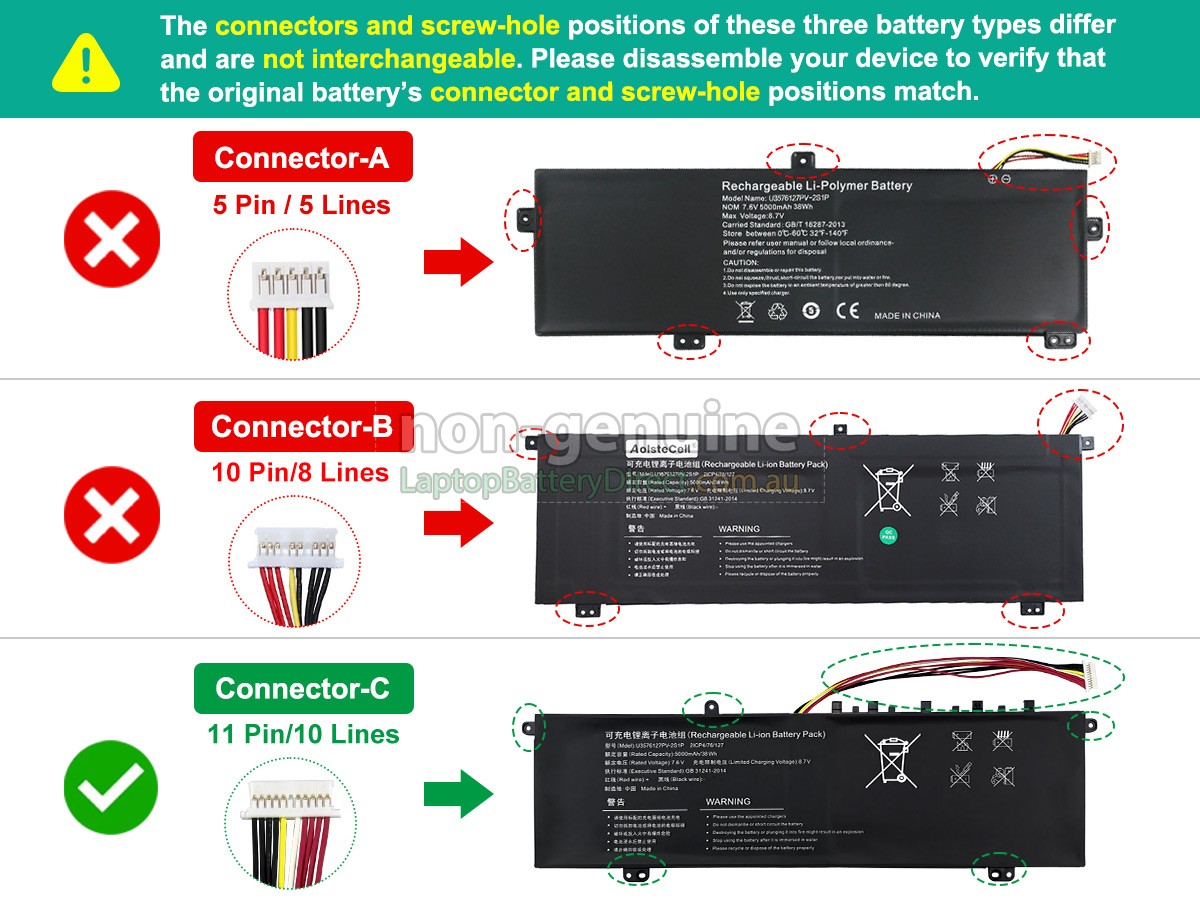First, you need to find model name of your laptop or part number of the old battery(e.g. "U3576127PV-2S1P"), and then check whether they