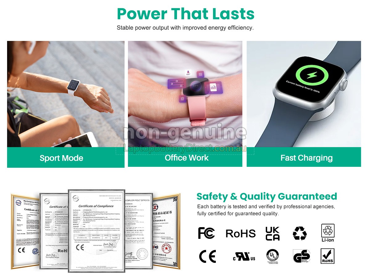 Apple A2478 EMC 3985 battery is a fast-charged, high-quality and superior-performing Apple watch battery. The replacement battery for Apple A2478 EMC 3985 smartwatch is manufactured in strict accordance with the original circuit design and standard. Selection of the original protection IC chip, branded lithium-ion batteries and adoption of a multiple intelligent security protection are in order to meet and exceed the original equipment manufacturers specifications.