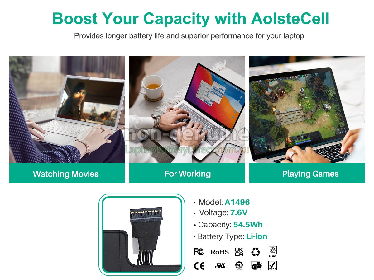 2. This battery(A1496) only compatibility with Apple MacBook Air 13.3 Inch A1369(EMC 2469)(Mid-2011),A1466(EMC 2559)(Mid-2012),A1466(EMC 2632)(Mid-2013,Early 2014),and A1466(EMC 2925)(Early 2014).3. Batteries A1405 and A1496 are in common use.4. Package Includes: 1 x Battery ,2 x Screwdrivers.