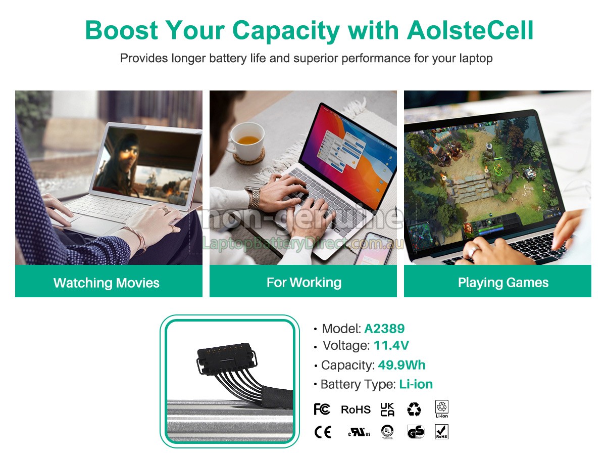 battery. The replacement battery for Apple MGN63LL/A* notebook is manufactured in strict accordance with the original circuit design and standard. Selection
