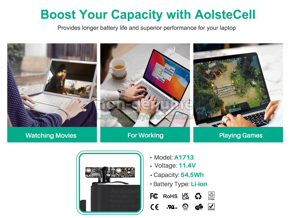 2. This battery(A1713) only compatibility with Apple MacBook Pro 13.3 Inch Retina A1708(EMC 2978)(Late 2016),and A1708(EMC 3164)(Mid 2017).3. Package Includes: 1 x Battery ,2 x Screwdrivers.