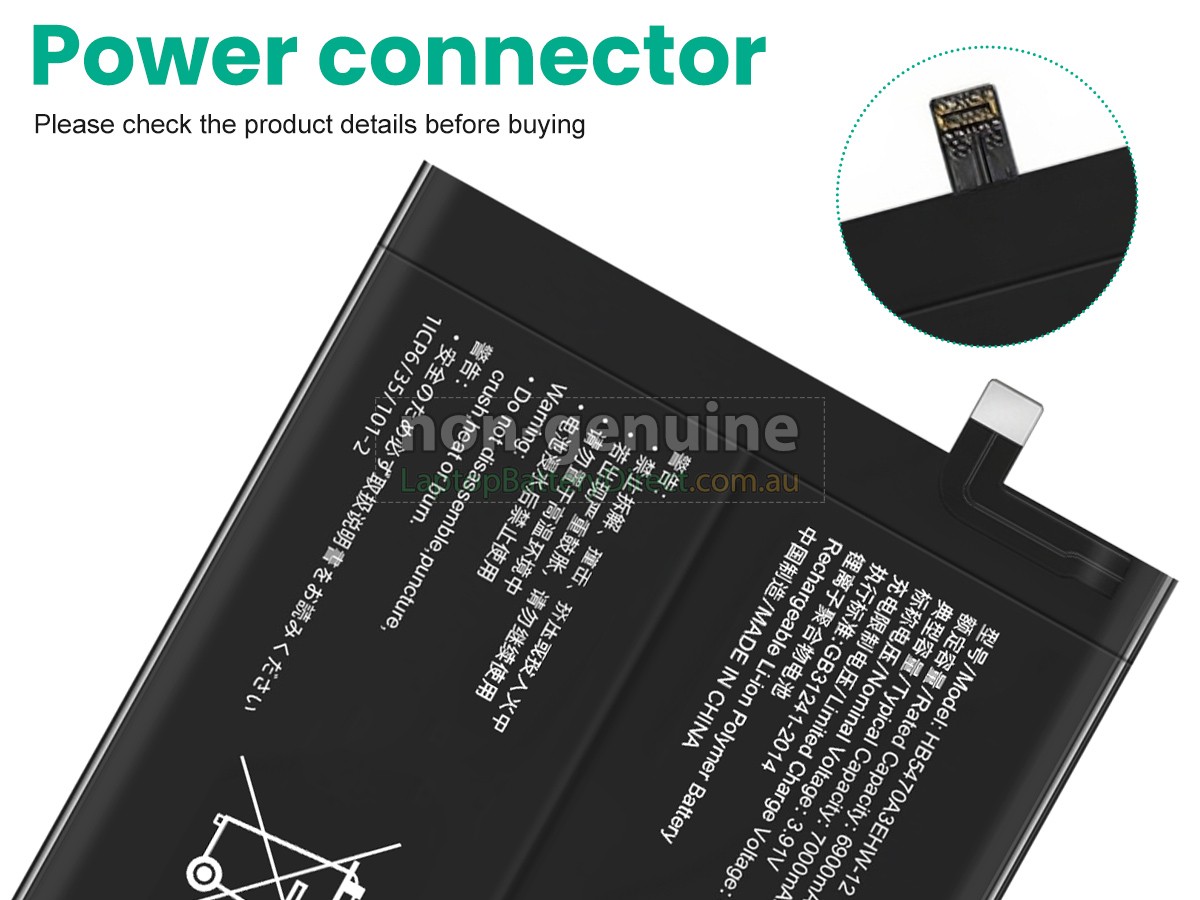 Huawei ENJOY 60X battery is a fast-charged, high-quality and superior-performing Huawei battery. The replacement battery for Huawei ENJOY 60X is manufactured in strict accordance with the original circuit design and standard. Selection of the original protection IC chip, branded lithium-ion batteries and adoption of a multiple intelligent security protection are in order to meet and exceed the original equipment manufacturers specifications.