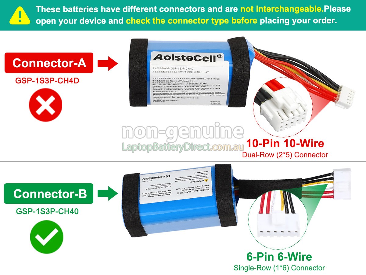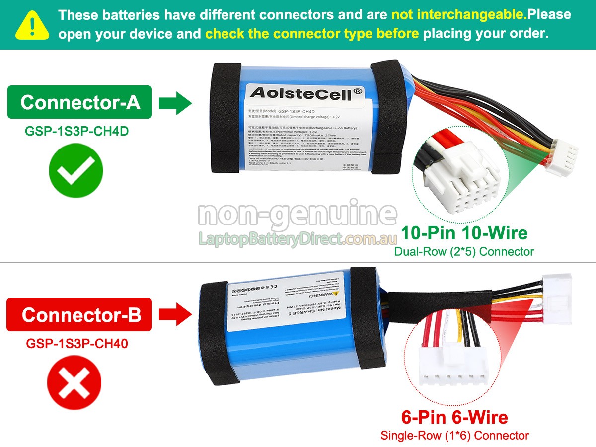 JBL GSP-1S3P-CH4D battery is a fast-charged, high-quality and superior-performing JBL bluetooth speaker battery. The replacement battery for JBL GSP-1S3P-CH4D speaker is manufactured in strict accordance with the original circuit design and standard. Selection of the original protection IC chip, branded lithium-ion batteries and adoption of a multiple intelligent security protection are in order to meet and exceed the original equipment manufacturers specifications.