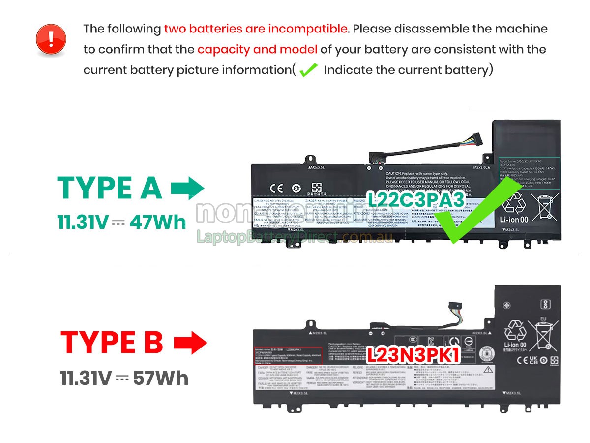 First, you need to find model name of your laptop or part number of the old battery(e.g. "IdeaPad SLIM 5 14IMH9-83DA00AAFR"), and then check whether they