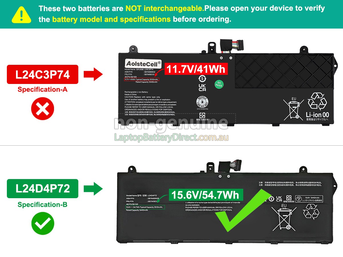 First, you need to find model name of your laptop or part number of the old battery(e.g. "ThinkPad L13 2-IN-1 GEN 6-21RD0011PE"), and then check whether they