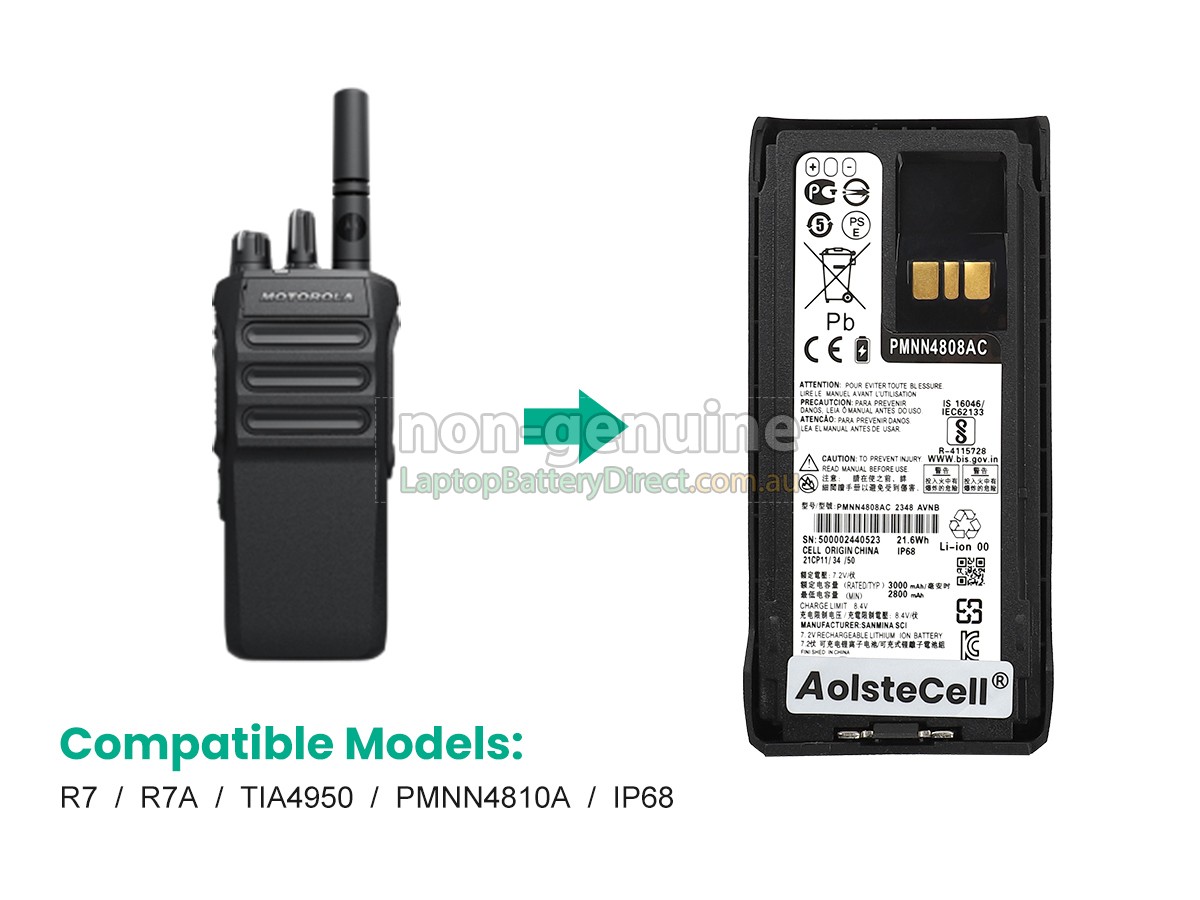 Our requirements for safety performance are extremely strict. Each replacement battery for Motorola PMNN4808A has gone through more