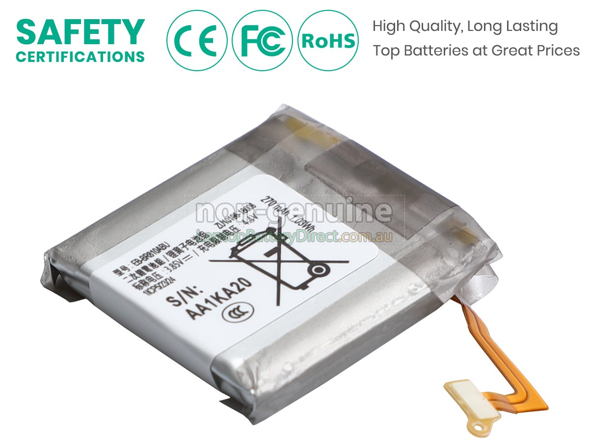 Samsung EB-BR810ABU battery is a fast-charged, high-quality and superior-performing Samsung watch battery. The replacement battery for Samsung EB-BR810ABU smartwatch is manufactured in strict accordance with the original circuit design and standard. Selection of the original protection IC chip, branded lithium-ion batteries and adoption of a multiple intelligent security protection are in order to meet and exceed the original equipment manufacturers specifications.