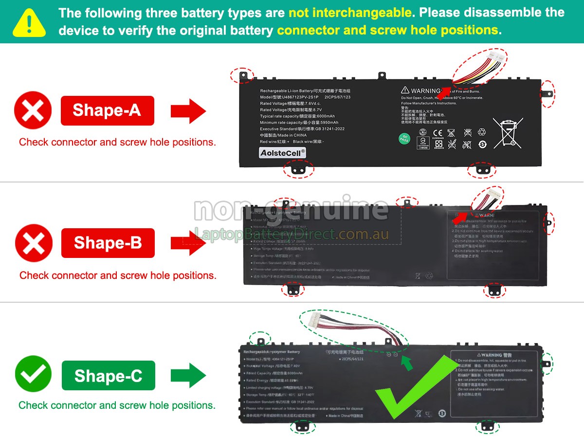 First, you need to find model name of your laptop or part number of the old battery(e.g. "4964121-2S1P"), and then check whether they