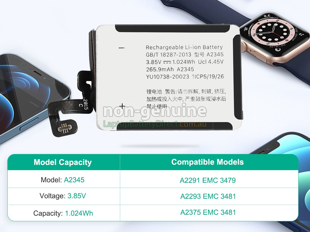 Apple WATCH Series 6 CELLULAR 40MM battery is a fast-charged, high-quality and superior-performing Apple watch battery. The replacement battery for Apple WATCH Series 6 CELLULAR 40MM smartwatch is manufactured in strict accordance with the original circuit design and standard. Selection of the original protection IC chip, branded lithium-ion batteries and adoption of a multiple intelligent security protection are in order to meet and exceed the original equipment manufacturers specifications.