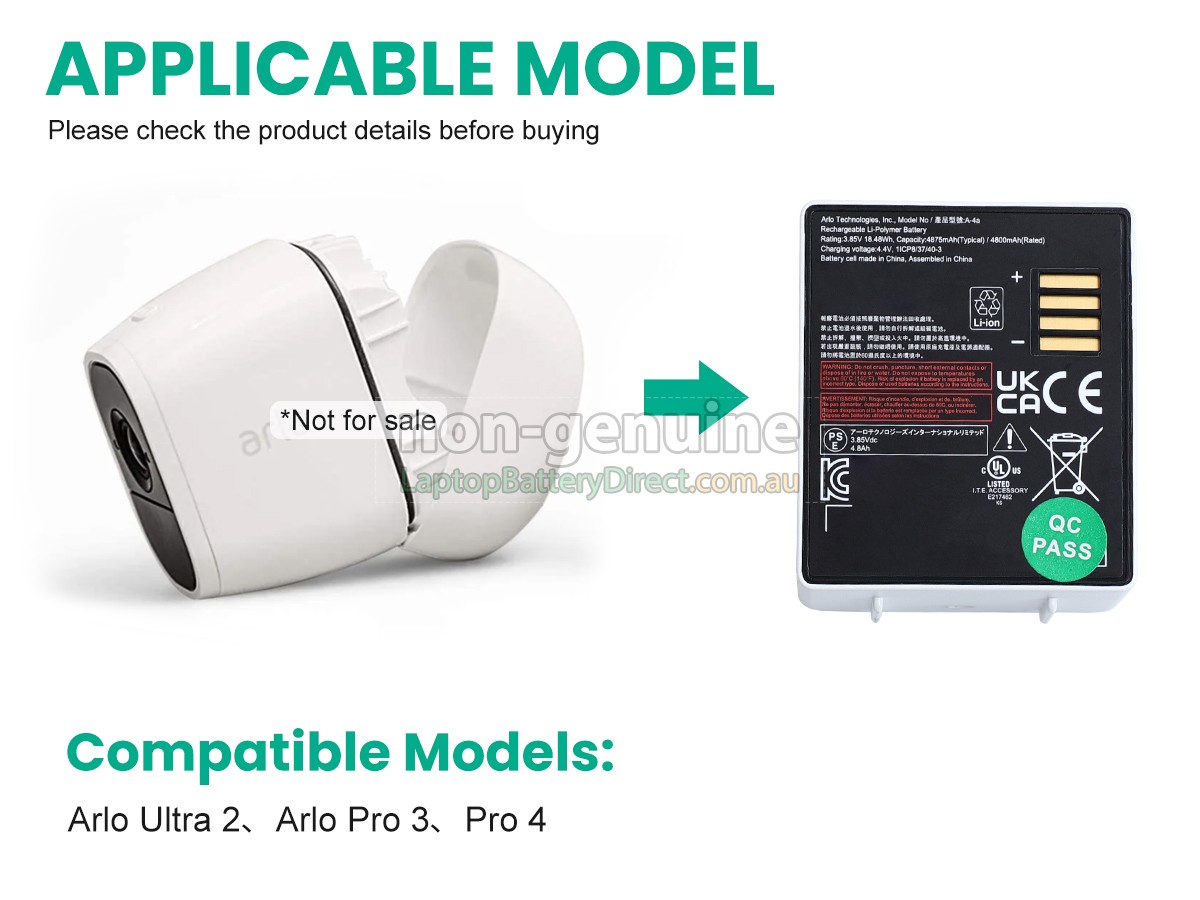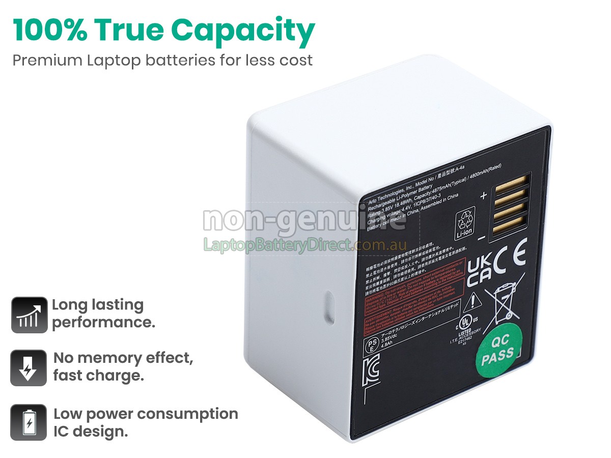 than one hundred strict tests on the quality and safety. These replacement batteries for Arlo A-4A have passed the CE, UL, ROHS, ISO9001/ISO9002 and other