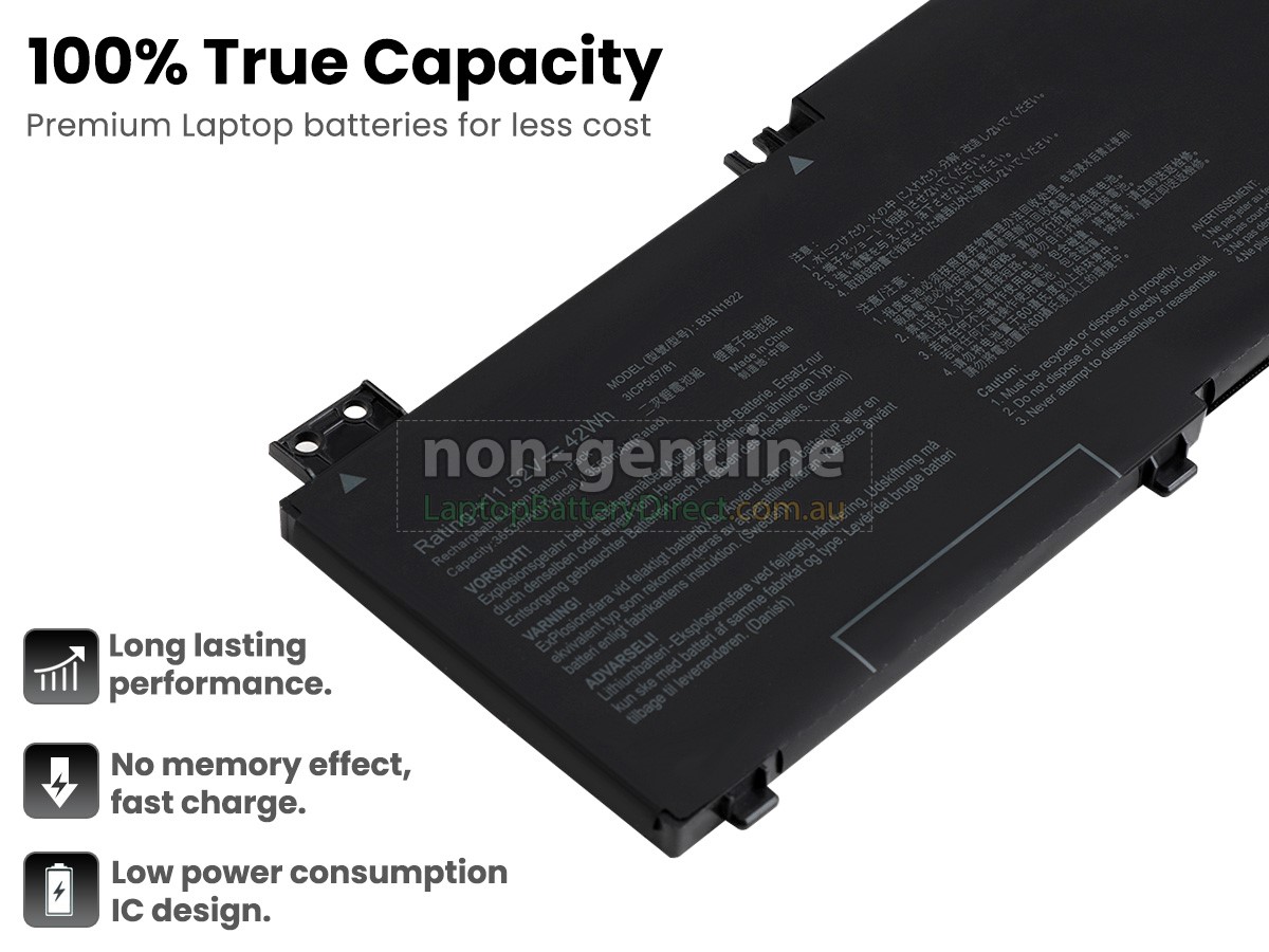 battery. The replacement battery for Asus B31N1822(3ICP5/57/81) notebook is manufactured in strict accordance with the original circuit design and standard. Selection