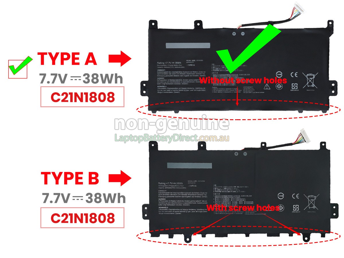 battery. The replacement battery for Asus C21N1808 notebook is manufactured in strict accordance with the original circuit design and standard. Selection