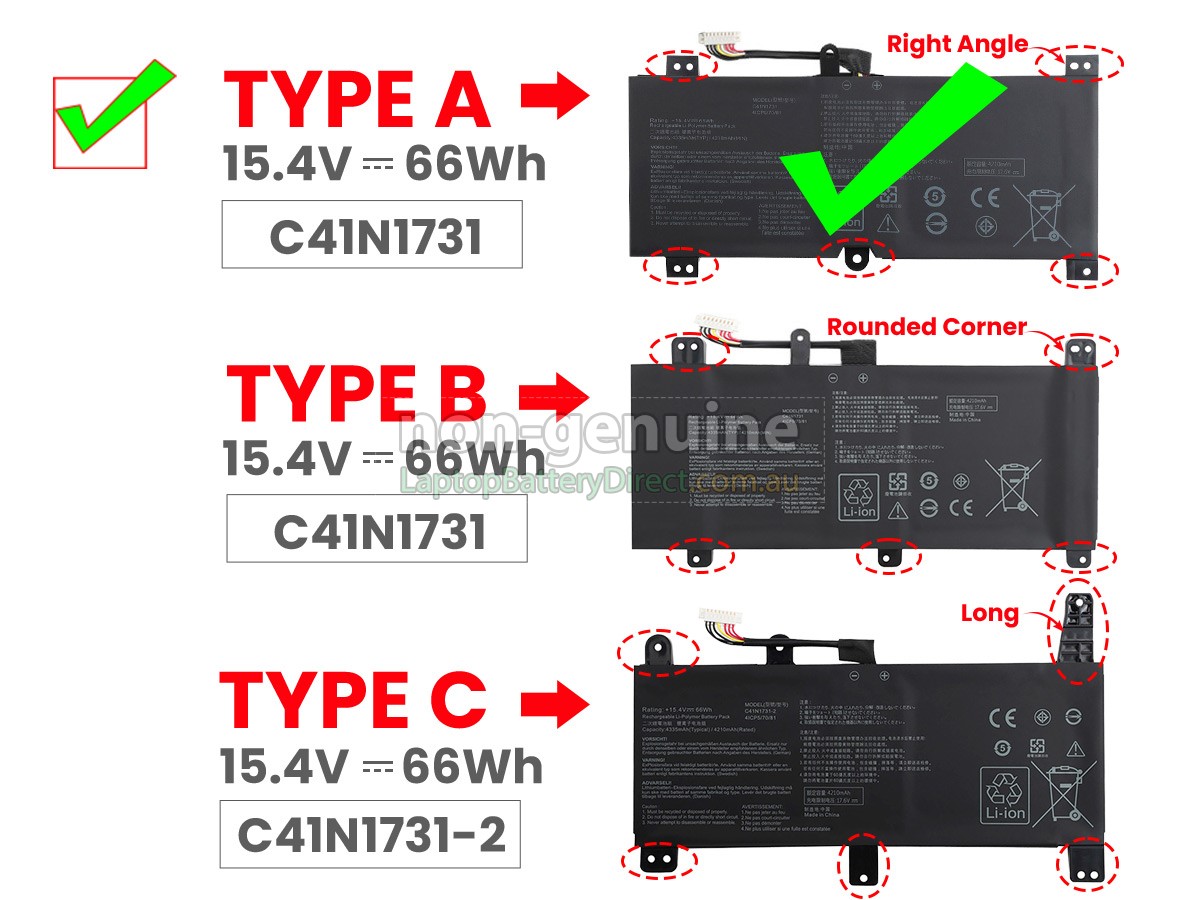 Before placing an order please open your laptop to check your old battery first, ensure order one right battery for your laptop, since there are 3 types batteries. This battery is only fit for ROG Strix G515GV, G515GW, GL504GM, GL504GS, GL504GV, GL504GW.