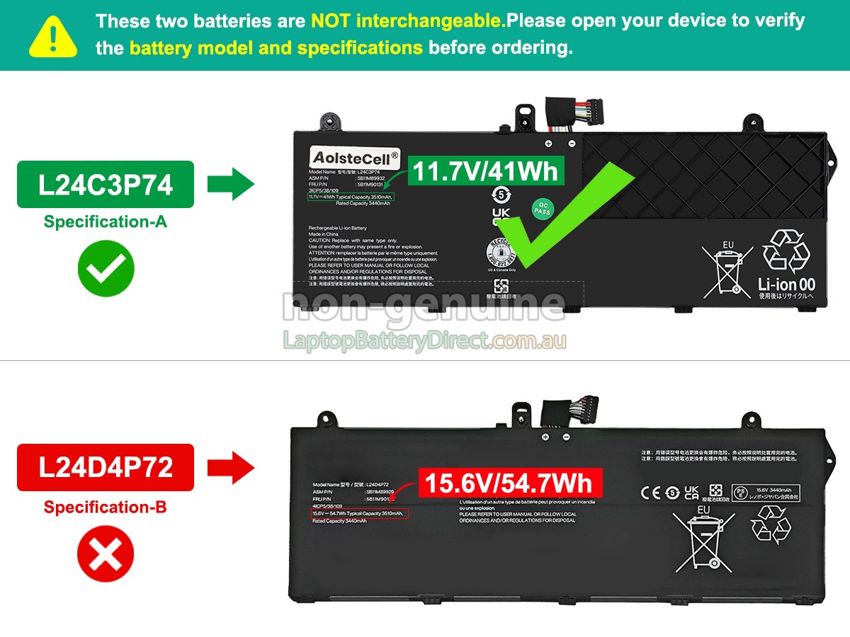 First, you need to find model name of your laptop or part number of the old battery(e.g. "ThinkPad L13 2-IN-1 GEN 6-21RD0010PG"), and then check whether they