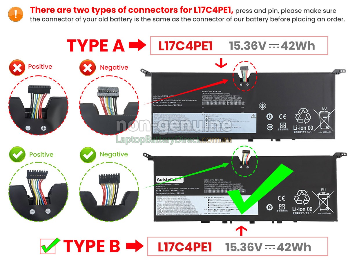 Note :1. 15.36V and 15V are compatible, they are in common use. 2. Before placing an order please open your laptop to check your old battery's connector, ensure the connector is same to our battery's.