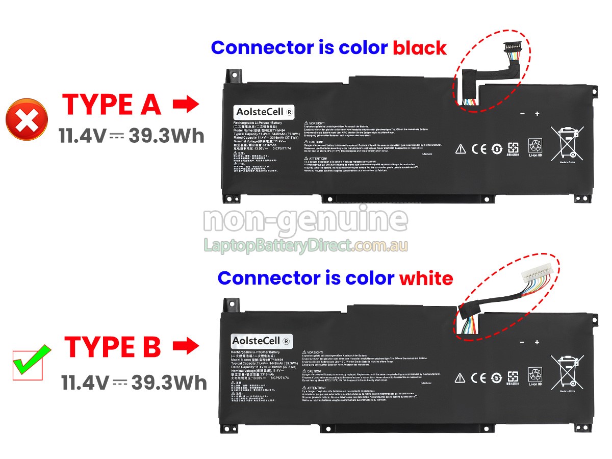 There are 2 types of batteries named "BTY-M491", please check the connector of your old battery before placing an order, make sure it is the same as ours.