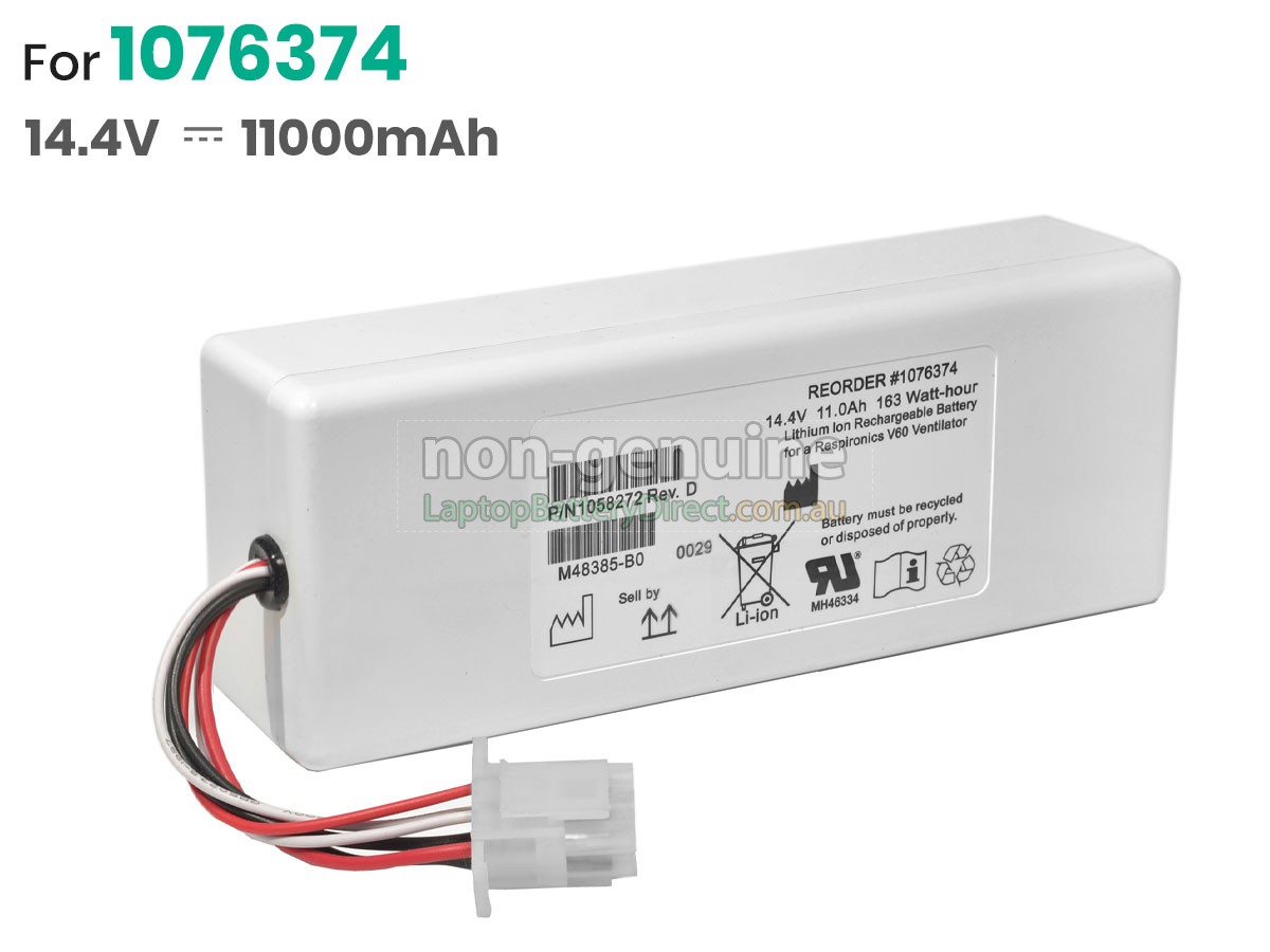 Philips RESPIRONICS V60S battery is a fast-charged, high-quality and superior-performing Philips battery. The replacement battery for Philips RESPIRONICS V60S is manufactured in strict accordance with the original circuit design and standard. Selection of the original protection IC chip, branded lithium-ion batteries and adoption of a multiple intelligent security protection are in order to meet and exceed the original equipment manufacturers specifications.